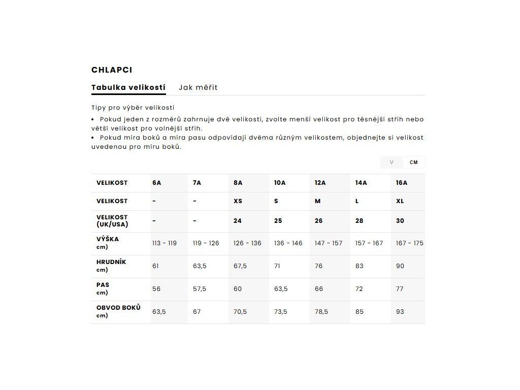 Velikost: 8 let, 10 let, 12 let, 14 let, 16 let
